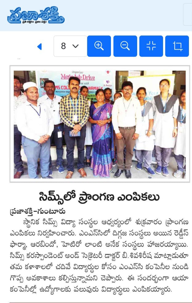 SIMS College of Pharmacy is an institution of renowned reputation under Southern Institute of Medical Sciences (SIMS), with a focus on excellence in pharmaceutical education. With over 17 years of experience in the field of education, SIMS College of Pharmacy is one of the oldest professional institutions in Andhra Pradesh.