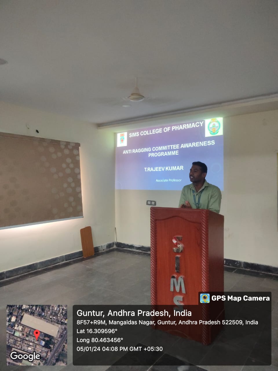 The Anti-Ragging Committee Awareness Program at SIMS College of Pharmacy, held on January 5th, 2024, was an important initiative focused on creating a safe and respectful college environment. Led by Mr. T. Rajeev Kumar, the Anti-Ragging Committee Coordinator, the session educated students about the dangers of ragging, its types, historical context, legal implications, and prevention strategies. Mr. Rajeev Kumar also highlighted the role of the Anti-Ragging Committee in ensuring student safety. The program reinforced the college's zero-tolerance policy on ragging, fostering a secure and inclusive space for academic and personal development.