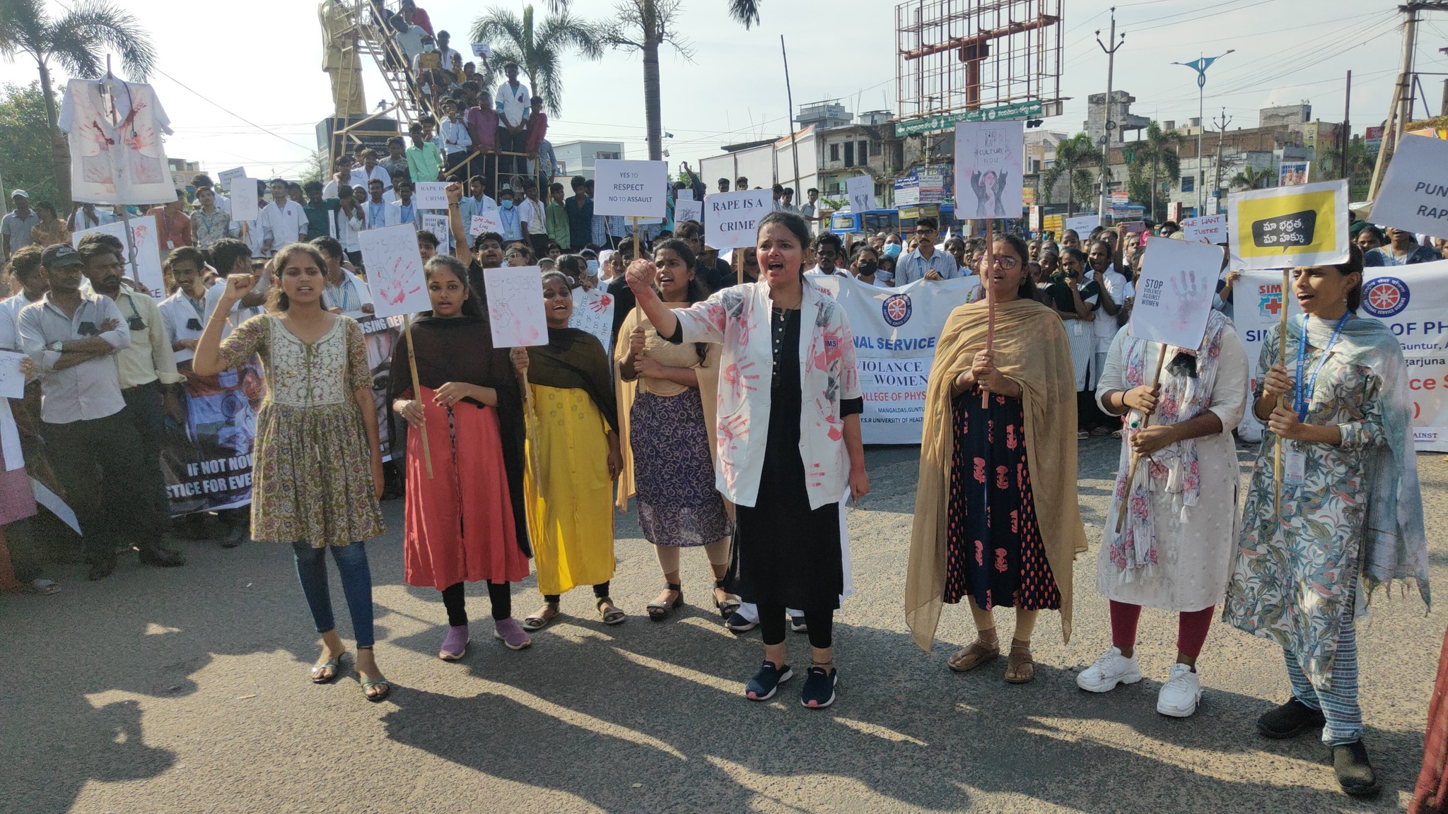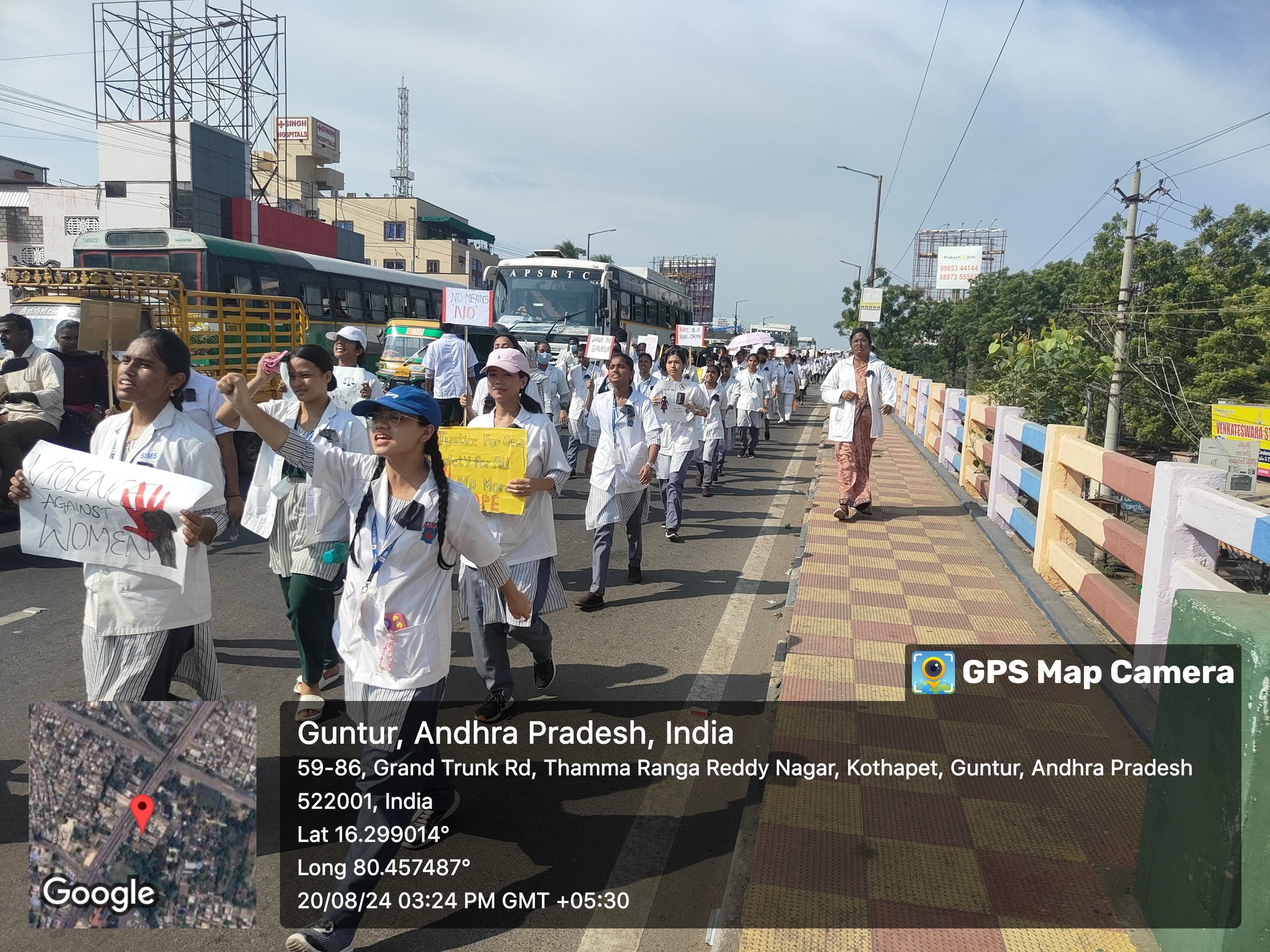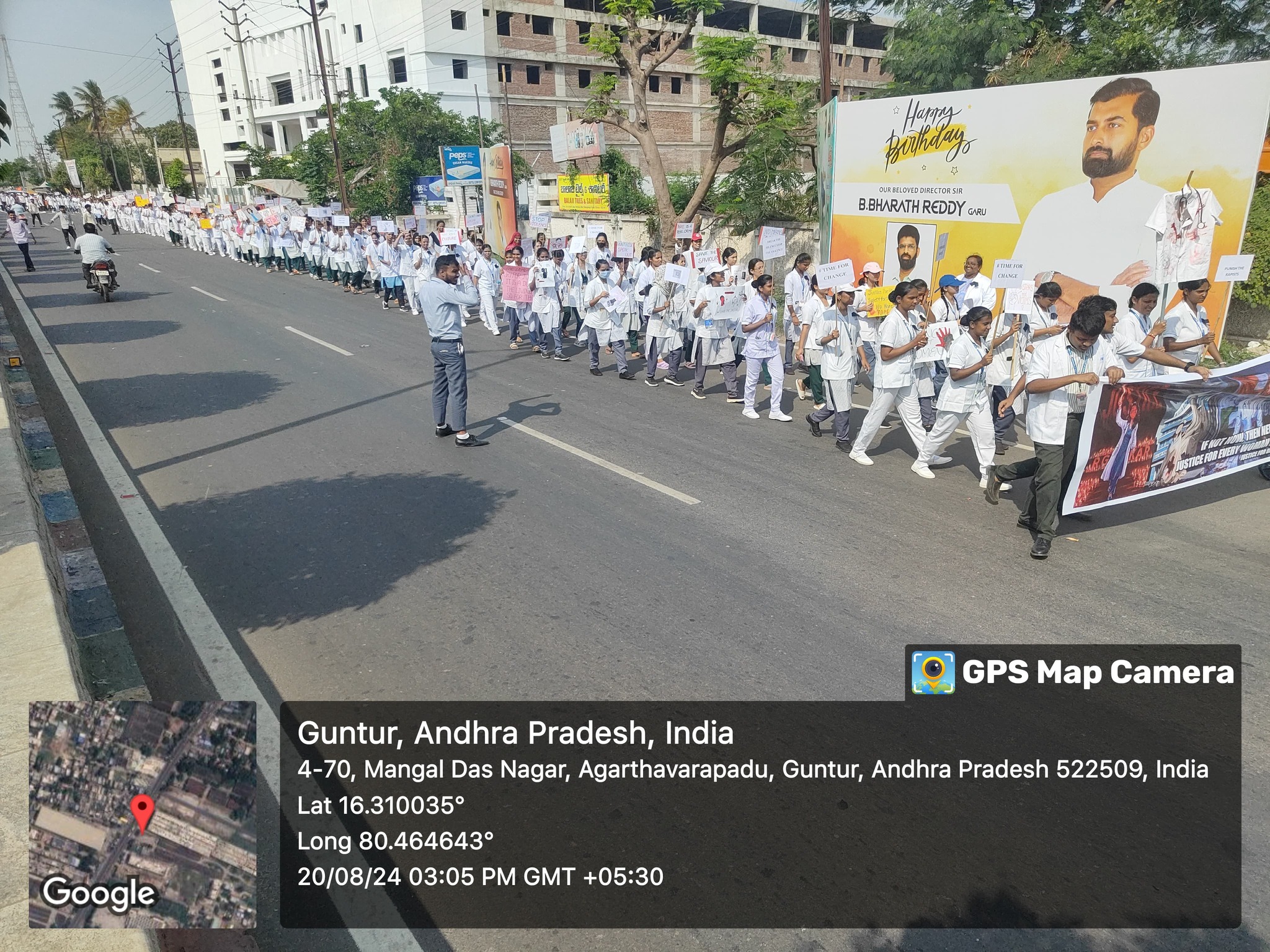 On August 20, 2024 under the leadership of SIMS College Secretary Dr. B. Siva Sirisha and Director Mr. B. Bharat Reddy, a rally was organized in Guntur. The principals, teachers, and students of SIMS College participated in this event. During the rally, students raised slogans demanding justice and called for strict punishment for the culprits involved in the incident that occurred in Kolkata. The students also performed a skit to raise awareness about the antisocial activities being committed against women.